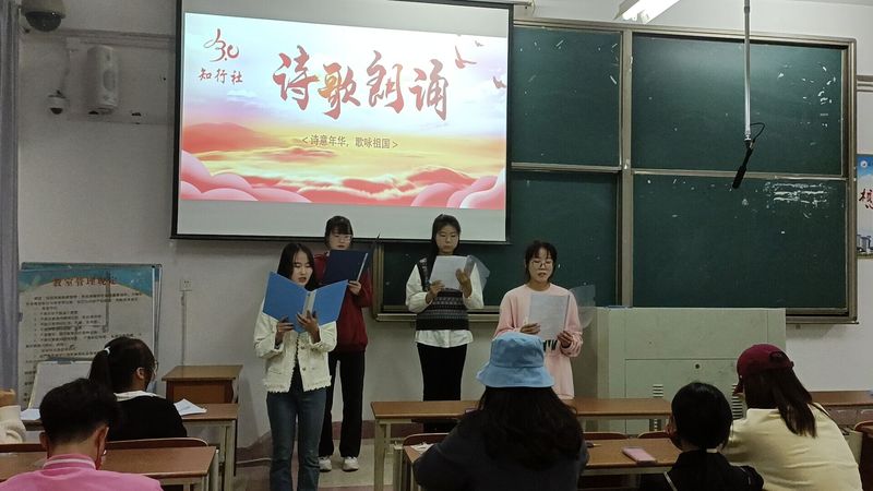 为丰富精神文化生活,提振大学生奋进新征程、建功新时代的昂扬斗志,10月30日,知行社在大同楼B406开展了“诗意年华,歌咏祖国”红色经典诗歌朗诵活动。诗歌朗诵活动在社长何玉存和部长团的组织下拉开了帷幕。